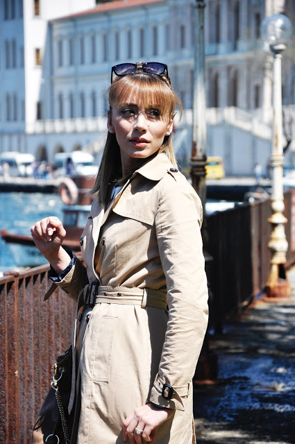 Ancak güzel bir bahar gününe yakışan, kolları ve yakası dantel detaylı olan yeni elbisemi giydim. Devetüyü rengini en çok krem ve leoparla yakıştırıyorum 🙂 Ben de devetüyü elbisemi, yine aynı tonlarda çantam ve leopar kemer & ayakkabılarımla kombinledim. Firmoo dan hediye edilen güneş gözlüğüm de tam zamanında gelmişti 🙂 Siz de isterseniz aynı gözlükten; şu yazımda da anlattığım bugün akşam 17.00 sıralarında başlayacak hediye etkinliğini de kaçırmayın 🙂 Saçlarımı da örgüden bant yaptırdım ki tam olsun 🙂Trenchcoat/Zara Dress/Elbise – Ahaishopping
